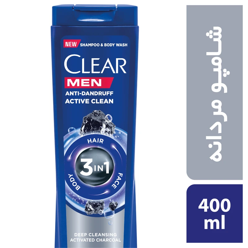 شامپو ضد شوره مردانه کلییر مدل زغال 3 در 1 حجم 400 میلی لیتر