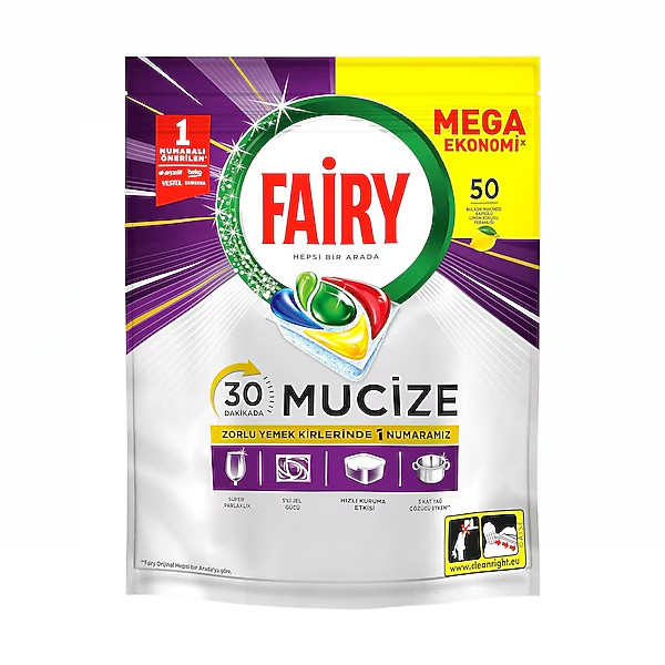 قرص ماشین ظرفشویی فیری مدل MUCIZE (معجزه) با قدرت پاککنندگی ۳۰ دقیقهای و رایحه لیمو تعداد ۵۰ عددی
